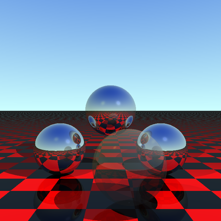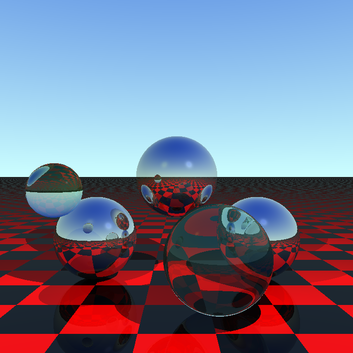 Taking this direction and the intersection point gives us our ray into the object. We then reuse the equation on the exit point with the refractive indices reversed, to find the direction of the exit ray. This gives us more realistic transparent spheres: